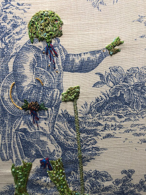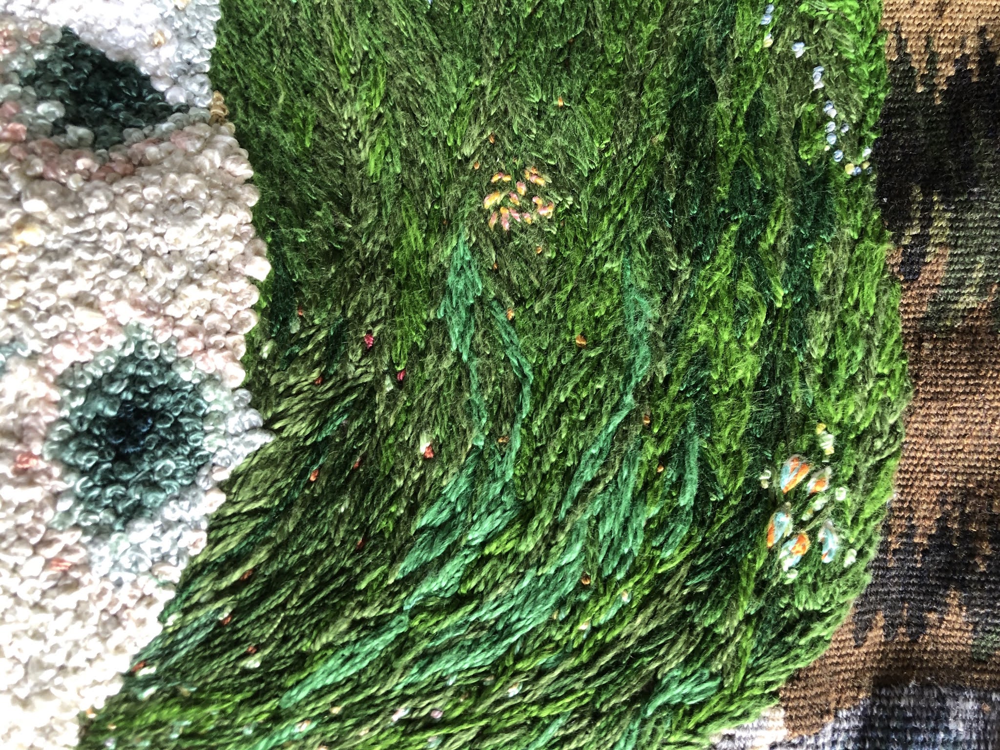 Being housebound in self-quarantine seemed like the perfect opportunity to let my needle skills loose on a massive tapestry and sink all the anxiety I was feeling about an uncertain future into a work which addresses those very feelings. The meditative process of needlework has been a great comfort in alleviating many unpleasant thoughts and feelings.
