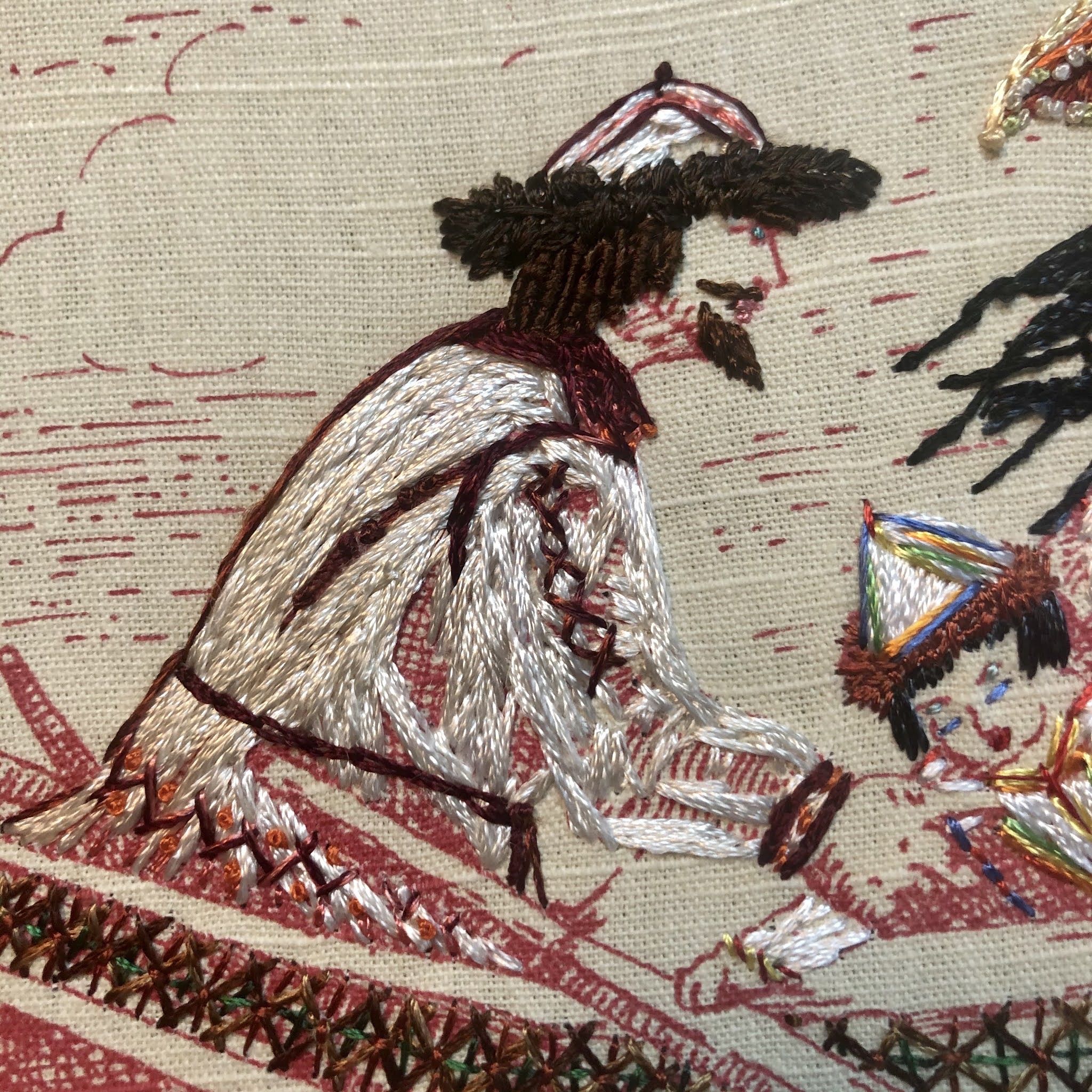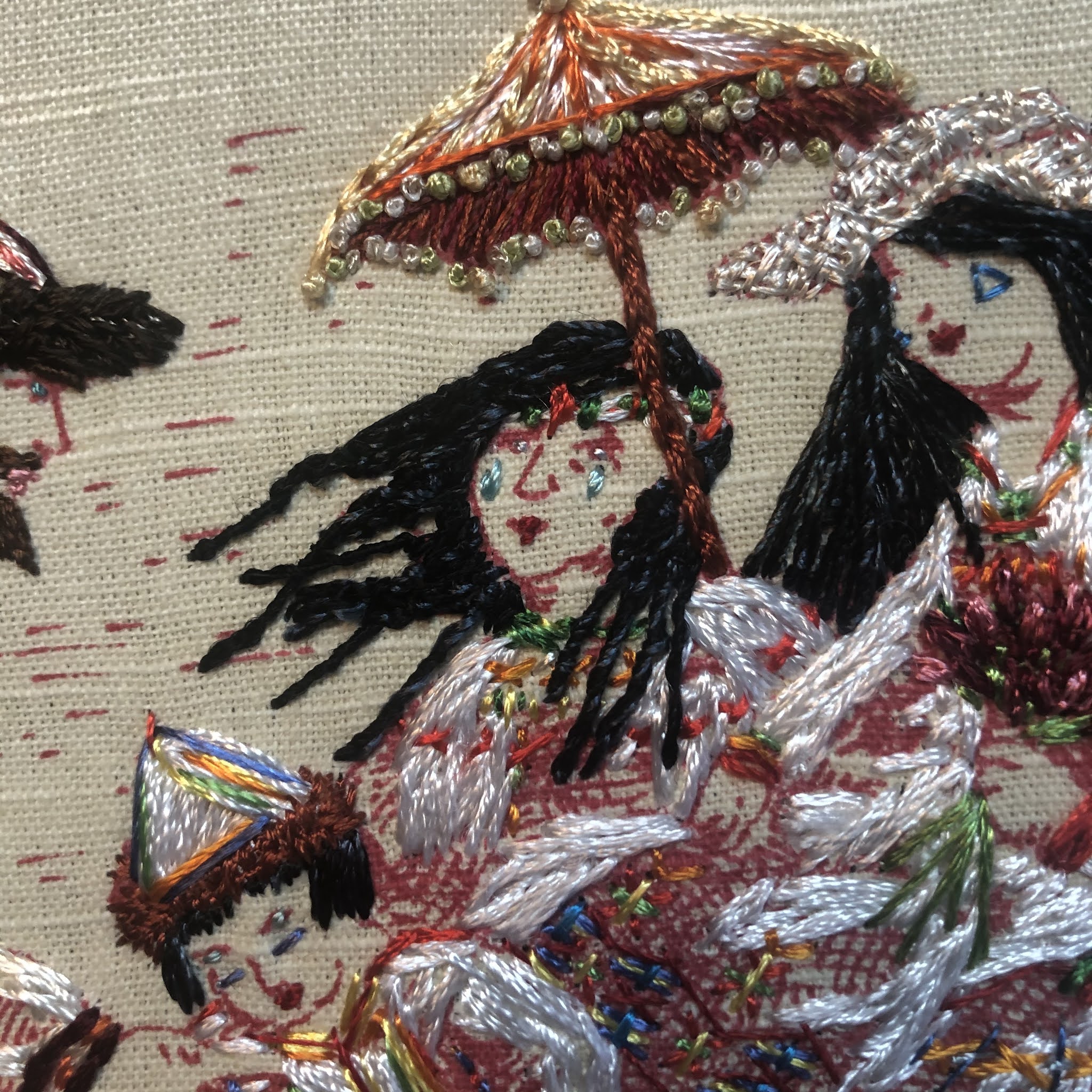 rayon floss on cotton toile